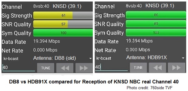 Every reception location is different. The goal is to pick the best antenna for THAT location. It is primarily the tilt feature of the 91XG and HDB91X that makes a difference at his location. The DB8 doesn't have a tilt adjustment; it would be a custom modification. When I was making antenna tests at a location that had a clear LOS path across water, I found that tilting my 4-bay UHF antenna increased the signal strength. http://forum.tvfool.com/attachment.p...1&d=1477409149 |