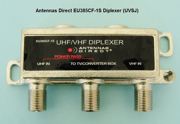 UVSJs (AKA UHF/VHF Diplexer) are getting hard to find. This is what they look like: https://www.antennasdirect.com/store...Combiners.html https://www.antennasdirect.com/cmss_...blyInstall.pdf http://forum.tvfool.com/attachment.p...1&d=1512355354 http://forum.tvfool.com/attachment.p...1&d=1497990764 https://www.radioshack.com/products/...itter-combiner http://forum.tvfool.com/attachment.p...9&d=1521912445 http://forum.tvfool.com/attachment.p...1&d=1497987173 Quote: