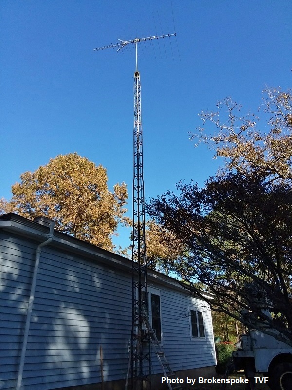 Thanks Rabbit73, I don't mind at all. Still got a couple things to finish this weekend when the rain stops. It did well in the high winds we had for two days. It is attached to the house and of course the base I still have guy lines to attach near the top and will add a preamp while I am up there.