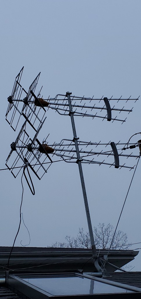 So I am about 39 miles north of Chicago on the Lake Michigan coastline. I'm actually below the lake Chicago Bluff which is geological history when Lake Michigan was Lake Chicago after the last ice age. This just means I'm below a ridge which is approximately on Sheridan Road so I lose about 20 ft of elevation. I also have some large oak trees directly in the path of Chicago. Not much I can do about that other than pay a tree trimmer with a high tower and gouge out a tunnel and that would do nothing about my neighbor's trees but it would improve things, but I digress. I am also 48 to 49 miles south of Milwaukee with what I would consider a fairly clear path with some trees well over 100 ft distant. I'm not so sure that those trees aren't a problem either because it's really messing with my ganging projects.. In the following pictures I have tried vertical stacking and horizontal ganging with these and other antennas. I don't know if it's the Tri-boom design or what. I may come back here and do a post just on this project if there's any interest of course. https://forum.tvfool.com/attachment....1&d=1690897748 Damn, I forgot how hard it is to upload pictures on this forum. Since I have to go to work I'll come back but that's the first question answered. This post is not finished. |