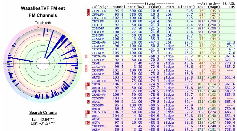 The 2 FM station are 3.2 miles from my home and have a RX(dbm) of -18.9 and -24.4. |