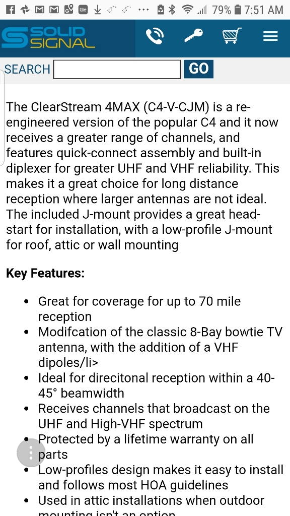 Thanks for the quick reply, it's well appreciated. No wind testing, surprising. They do appear to be very weather proof though and somewhat aero dynamic, especially with the reflectors removed (as designed). So, here's where I saw they have been "re-engineered", according to Solid Signal's marketing Dept. of course: http://forum.tvfool.com/attachment.p...1&d=1553863874 Attachment 3336 http://forum.tvfool.com/attachment.p...1&d=1553864120 Attachment 3337 I've seriously entertained the idea of getting two. While reading reviews o Amazon, I did see where some complained about the VHF capabilities (over 35 miles). If one was so inclined, could two of these be combined to one input? |