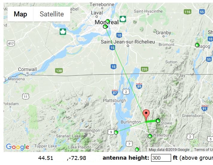 The green signal line to Canada on the TVFool Interactive map doesn't even come on until I raise your antenna to 300 feet.