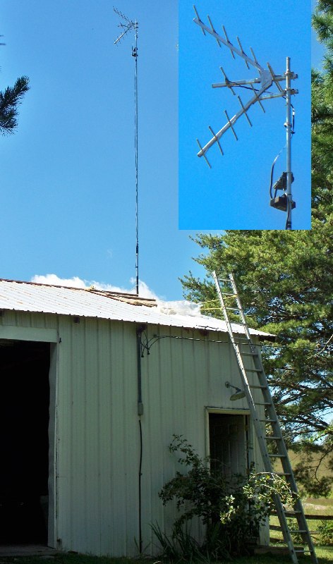 Your idea of swapping antenna positions is a good one. Vertical signal layering can cause a substantial signal strength variation over relatively short distance when antennas are relatively close to ground (in terms of wavelength). About the Winegard balun. It can be installed either way, phase relationship flips with balun reversal, matters not much on single antennas. For stacking, to maintain phase relationship, one must take this into consideration. Antenna rotators can be very useful tools in troubleshooting. -------------------------------- 'Above the top' will be easier explained after a few more photos. -------------------------------- This is a photo of the antennas that replaced the CM-1110. . http://forum.tvfool.com/attachment.p...8&d=1369571323 . The only objective of the VHF antennas was to better receive WKYT (at that time RF channel 13), 74 miles distant, 2-edge diffraction according to TVfool. The configuration: - Two Winegard YA-1713, stacked - Combiner; Winegard CC-7870 - Spacing; 43 inches (was varied +/- 18 inches while watching Signal Meter) - Mast length; 10.5 feet, ~ 7.5 feet above tower. (Made from heavy duty top fence rail (SS-20, ~1 & 3/8 inch outer diameter) - Channel Master antenna rotator moved inside tower for stability. - Final Preamp, Channel Master CM-7777 (original), a WG-3700 was tested - All cables RG-6, custom installed connectors. In 2010, WKYT changed RF channels from VHF 13 to UHF 36, so the YA-1713s were not of much use after that. The configuration stayed in place for approximately a year, until ~mid 2010. . |