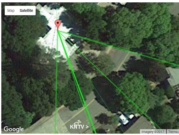 Glad to know I'm going in the right direction. It appears my sight line to Sutro Tower goes right through a Extenet Micro Cell tower along a public road. I have email to Extenet about my TV reception concerns. The HDTC-2US reports unlabeled "auto" Signal Strength of 70% on RF 58 , RF59, RF 60 and RF 61. When I point the 91XG 15 degrees off line of Sutro RF 44 Signal Quality improves. But RF 29, RF 43 and RF 45 Signal Quality goes down :( (left of redwood tree to ridge) 91XG + RCA TVPRAMP1R + 100ft RG6 + HRTC-2US 29 100 69-71 43 100 85 44 100 90 45 100 81 RF 44 channel specific interference? Even when coming from same tower it can happen :confused: My best roof location can point left or right of the big redwood tree. When I get a better mast I will try adjusting the antenna height. Will 6 inch increments be a good starting place ? Maybe I will go back to pointing right of the redwood tree with height adjustment. I read the articles on stacking identical antennas to manage multipath interference. That will be a last resort. Once the above resolved, I need to deal with NBC RF 12 which is Signal Strength 87 and Signal Quality 60. The Y10713 is really compact compared to my old 10 foot Radio Shack antenna. |