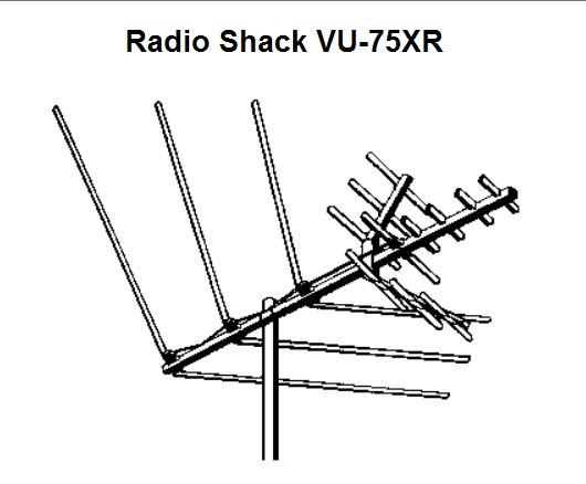 Channel 13 is 210 to 216 MHz; center frequency 213 MHz. A half wave dipole is 5540/freq in MHz, with the answer in inches. 5540/213 = 26 inches for a half wave dipole VU-75XR VHF/UHF/FM Antenna (150-2151) Specifications Faxback Doc. # 38046 Average Gain Low Band VHF 2-6: ...................... 2.8 dB High Band VHF: 7-13..................... 5.8 dB UHF Band: .................................... 5.6 dB FM Band: 88-108 MHz................... -0.8 dB Median Av. F/B Ratio VHF Low Band: .................. 8.0 VHF High Band: ................. 9.0 UHF: ............................... 15.0 FM: ................................... 6.0 Average Half-Power Beam Width Chan. 2 - 6: ................. 69 degrees Chan. 7 - 13: ............... 49 degrees UHF*: ......................... 54 degrees FM: ............................. 72 degrees * At Chan. 30 (566 MHz) http://forum.tvfool.com/attachment.p...5&d=1459996934 |