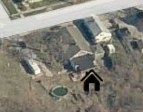 So here are the images from the interactive map showing the current location, possible chimney as well as the front of the house. All 3 show the lines indicating the path to the stations.