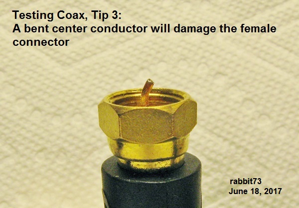 Now, follow me for a sec. One thing I've always tried to use to teach myself electricity is to think of it as a river. Now, when testing components such as coax, I get stuck on the terminology: Capping, shorting, terminating a component – all the same thing – is tantamount to attaching an alligator clip to one end, biting the copper wire ( the "conductor" ) while touching the negative ( here, the threading ) so it effectively creates a circuit once the multimeter is connected at the opposite end, so one can test that component? |