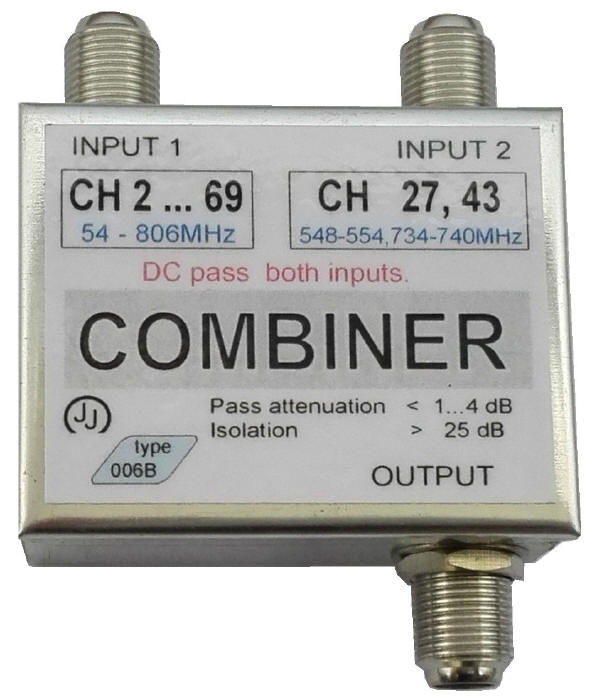 UVSJs (AKA UHF/VHF Diplexer) are getting hard to find. This is what they look like: https://www.antennasdirect.com/store...Combiners.html https://www.antennasdirect.com/cmss_...blyInstall.pdf http://forum.tvfool.com/attachment.p...1&d=1512355354 http://forum.tvfool.com/attachment.p...1&d=1497990764 https://www.radioshack.com/products/...itter-combiner http://forum.tvfool.com/attachment.p...9&d=1521912445 http://forum.tvfool.com/attachment.p...1&d=1497987173 Quote: