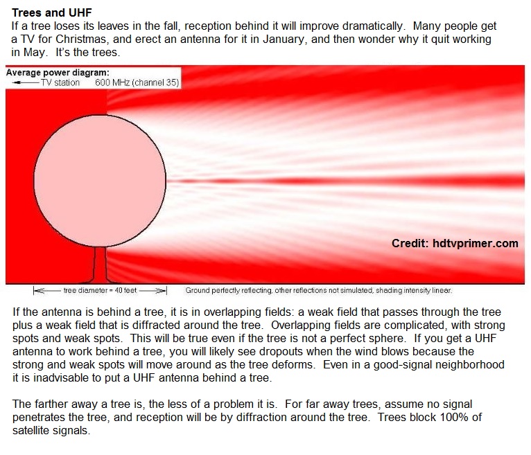 http://www.hdtvprimer.com/antennas/siting.html Scroll down to Trees and UHF if the hdtvprimer.com site is up. extract from that page: http://forum.tvfool.com/attachment.p...1&d=1493487319 Because the WCCU antenna is in the attic, you could try the suggestion by ADTech to add the Antennas Direct Juice preamp. That preamp resists overload as he said, but it might overload the TV tuner, in which case you could insert an inexpensive attenuator to prevent that. You also have a very strong local FM transmitter, WGNJ, also to the north, that might cause overload: http://www.fmfool.com/modeling/tmp/a...a/Radar-FM.png http://forum.tvfool.com/attachment.p...0&d=1521922105 Since the attic antenna also covers VHF, it will make the WGNJ FM signal even stronger. You could try inserting an FM filter in the coax between the antenna and the preamp input, but for some strange reason Antennas Direct has discontinued their FM filter and they were the only regular source left: https://www.antennasdirect.com/store...on_filter.html As a substitute, you can insert a UVSJ, UHF and common ports, which will pass only UHF signals and block VHF and FM. WCCU attic antenna > UVSJ > Juice preamp > coax > power inserter > TV This is an experiment; I can not offer a guarantee. |