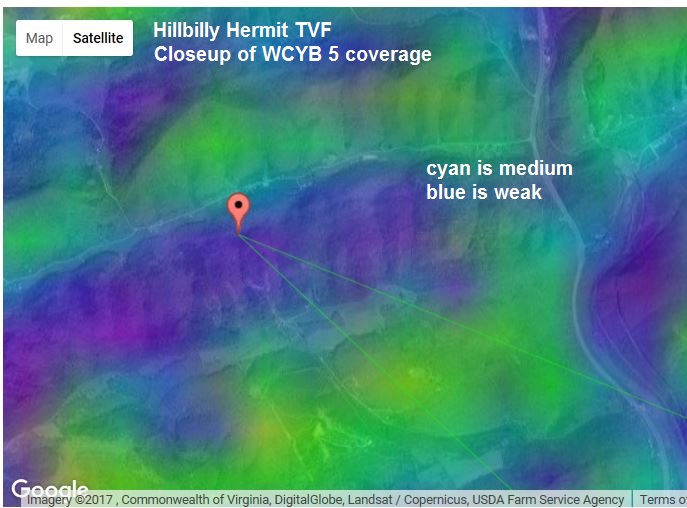 http://forum.tvfool.com/attachment.p...1&d=1506794352 The WCYB signal coverage is very spotty in rough terrain: http://forum.tvfool.com/attachment.p...1&d=1506794352 http://forum.tvfool.com/attachment.p...1&d=1506794352 |