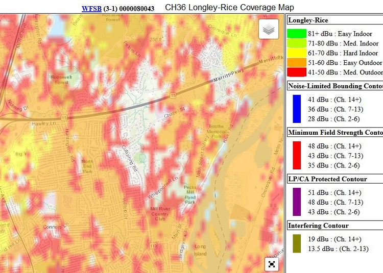 https://forum.tvfool.com/attachment....1&d=1566760545 WVIT NBC: https://forum.tvfool.com/attachment....2&d=1566762125 WFSB will be more difficult: https://forum.tvfool.com/attachment....3&d=1566763550 Using other software for the WFSB terrain profile: https://forum.tvfool.com/attachment....5&d=1566774694 This is the WFSB Longley-Rice coverage map for your area. Red is the weakest listed color; no color is weaker. https://forum.tvfool.com/attachment....4&d=1566772378 |