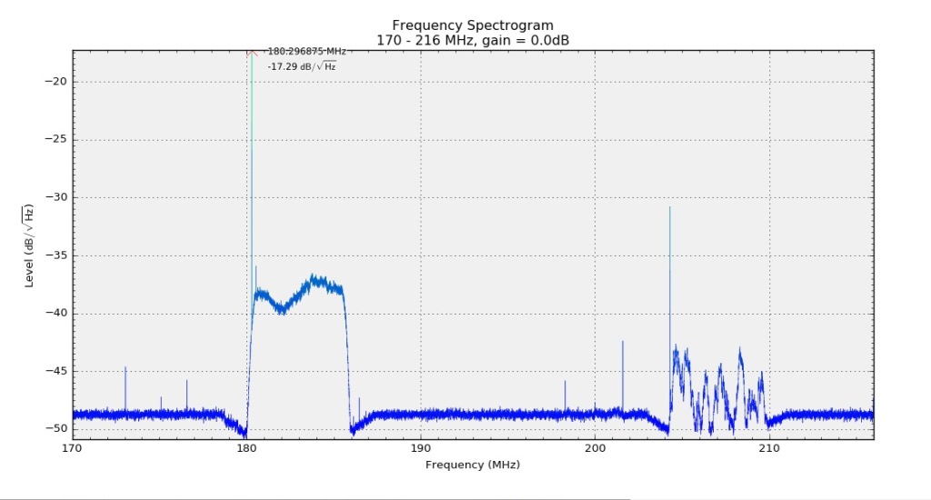 Here's the initial test. This is the RTL SDR Spectrum analyzer, with the new array pointing at Milwaukee and RF 8.