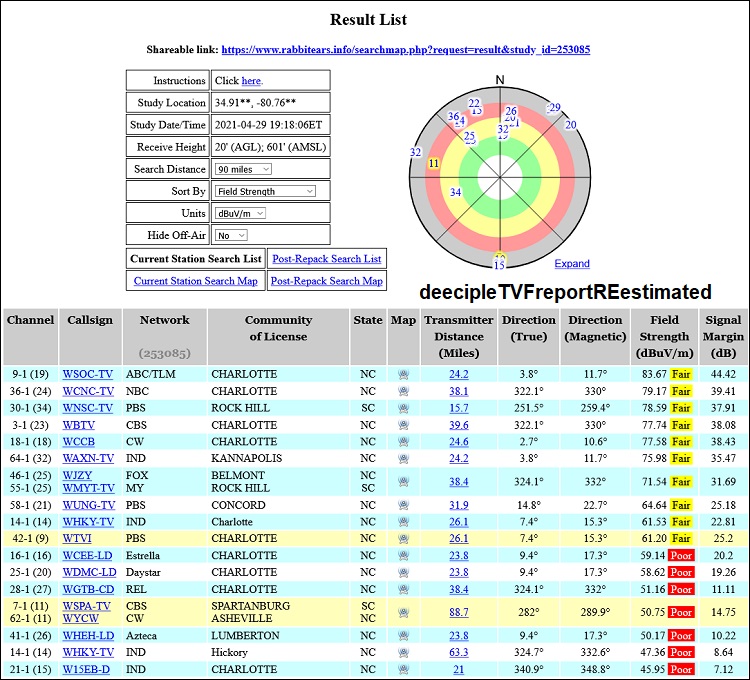 Thanks for the report. TVFool is using an old database to generate reports, so I did an estimated report for your location using rabbitears.info: https://www.rabbitears.info/searchma...tudy_id=253085 https://forum.tvfool.com/attachment....1&d=1619741177 You can do a more accurate report for your location at this site (I use coordinates from Google maps): https://www.rabbitears.info/searchmap.php You have a few signals that should be OK with an attic antenna but they are not all in exactly the same direction. |