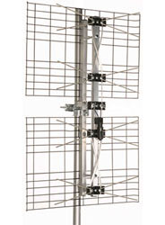 Description Several manufacturers make 2 bay bowtie antennas because of its simple design, reasonable gain, and compact size. Some of the more common variants include the Channel Master 4220 and Antennas Direct DB2. Typical Application - Outdoors, patio or roof-top, suitable for strong to medium signals with only mild multi-path. - Although these are intended for outdoor use, they are also small enough to be considered for indoor use as long as you can figure out a way to mount it and don't mind the size/aesthetics/weight (it's a bit bulkier than your standard set-top antenna). Size - Approximately 20" wide, 18" tall, and 7" thick Operating Frequencies - UHF only Gain - This antenna gets between 4 and 8 dBd at different points within the UHF band. http://forum.tvfool.com/attachment.p...1&d=1260790546Aiming - This antenna has its maximum gain out its front. The face with the bowties should be aimed toward the transmitters. The horizontal beam width is approximately +/-30 degrees from side to side (60 degrees total width), in case you need to fetch channels spread apart by several degrees. http://forum.tvfool.com/attachment.p...1&d=1260780660 |