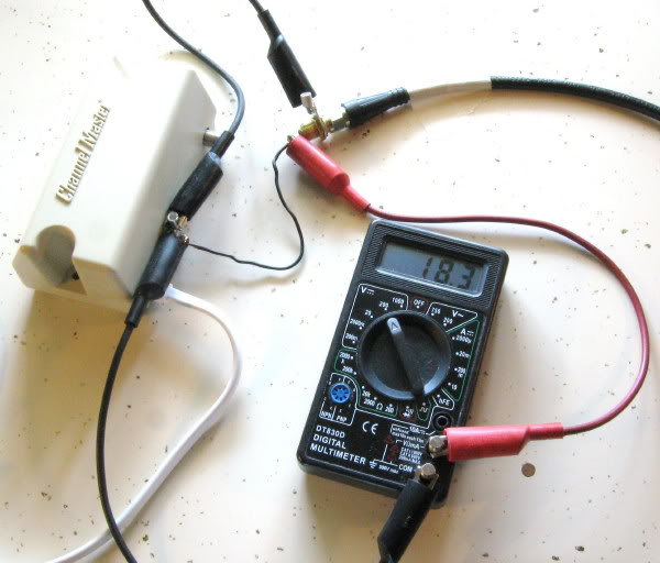 I test every one before I use it by inserting a short length of 18 gauge solid copper wire to see how well it grabs it. That's the same gauge as the center conductor of RG6. Here I'm measuring the output voltage of the CM0747 power supply/inserter under load. It is necessary to have access to the center conductor to measure the voltage and current, hence the 18 gauge hookup wire: http://forum.tvfool.com/attachment.p...1&d=1416169141 The photo is from this post: http://www.avsforum.com/forum/25-hdt...l#post20502719 from this thread: CM7777 preamp failure question http://www.avsforum.com/forum/25-hdt...-question.html Quote: