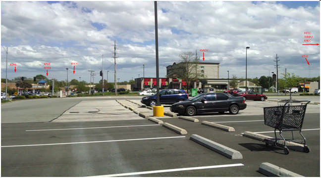 Early last spring, I stopped in Kirkwood at a location to take some signal readings of our local TV signals from a point where I could see a number of the local broadcast towers. The location was on South Lindberg (US Hwy 67), just north of I-44, in the parking lot of the Burlington Coat Factory store, across Lindberg Blvd from the Walmart Super Center. Overhead view of parking spot. http://forum.tvfool.com/attachment.p...1&d=1427471305 I snapped a quick photo out my car window facing east. A number of the local TV station towers were visible as they were less than 5 miles away. I’ve highlighted the locations of the towers in the photo. http://forum.tvfool.com/attachment.p...1&d=1427471305 Reception forecast for test location, provided by TVFool. http://forum.tvfool.com/attachment.p...1&d=1427471305 I set up the Rigol spectrum analyzer, running off a battery pack/inverter, to use a prototype of the Eclipse which was affixed to inside of the left rear car window so that the local signals could be viewed. http://forum.tvfool.com/attachment.p...1&d=1427471305 One thing immediately obvious is that KMOV’s million watt signal is nearly gone and shows evidence of severe multi-path (about 10 dB differential from min to max within the channel’s bandwidth and is down an estimated 20-30 dB from where it was expected to be. In fact, it’s displayed power level is about the same as a 2.0 kW channel 36 signal (KPNT) that transmits from KPLR’s tower. Looking at the photos on the first page of this report, it can be seen that the KMOV broadcast tower is directly behind the Best Western hotel next to the Chili’s restaurant. The building is six stories tall and is of concrete and steel construction. Several additional observations: 1. TVFool calculated Rx signal powers for the top four stations on the list of between -11 and -15 dBm. Actual signal power measurements were substantially lower, in the neighborhood of -27 to -42 dBm with a difference of up to 25 dBm below the forecast levels, presumably because the main lobe of the broadcast signals was well overhead. 2. KMOV’s signal, when measured at the location behind the building, was some 40 dB below its forecast level. 3. Stations KNLC and KETC are visible, but their signal was coming from the edge of the antenna and on the other side of a shopping center building. 4. WBRU, operating on channel 47, is barely visible as a small bump in the noise between the signals for KTVI and KUMO-LD (which transmits from same tower as KPLR). By the way, here’s what happens when a “fringe” area preamplifier gets installed. http://forum.tvfool.com/attachment.p...1&d=1427471305 It took about 16 dB of attenuation at the pre-amp’s input to cool off the intermodulation distortion that was visible above the analyzer's noise floor. Edit 3/30/15: Several notes: 1. The combination of bandwidth, MLP usage, and attenuator settings resulted in a displayed noise floor of only -65 to -70 dBm. It is possible that, with different settings, that the displayed noise floor might be pushed down (up to) another 20 dB. It is necessary to keep the signal level below -10 dBM at the Rigol's mixer input to avoid having it add its own internal IMD tot he display. 2. The majority of St Louis' FM stations transmit from those same towers as several of the TV stations. My test setup that day did not include any additional precautions, except using the UHF-only design of the Eclipse, to reduce signal powers below the displayed band. Therefore, there is a distinct possibility that FM broadcasts *might* have contributed to displayed images of distorted signals from some of the amps. My tests that day focused on the UHF band and harmonics up to 1.5 GHz. If I repeat any of those experiments in the future, I'll include FM signal levels as well as investigating the effect with FM attenuated, either with an external UVSJ or FM trap. |
