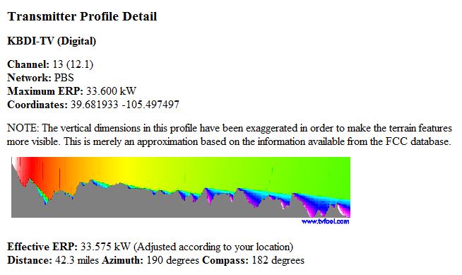 http://www.tvfool.com/?option=com_wr...f1f013decdd4fc The report is for my house. My neighbor's house is about 200 feet away and 30 feet higher than my house. We live on the south side of a slope, way up high, but there are some ridges to our south where the broadcast antennas are located, 40 miles away. We're really only interested in getting NBC, ABC, and PBS. CBS would be nice, but it's weaker, and we can stream that one if needed. We've already been experimenting a bit... He bought a Winegard HD-7694P antenna (no amp) and we hooked it up on a 4 foot pole above the ground at his house. Without more than a general pointing, he got 11 stations, all very clear without any tiling. He got KCDO, GRIT, KMRA, V-Me, Create (PBS), KUSA, Justice, KSBS, KBDI, KBDI+, KBDI WB. Everything he's looking for except the ABC station KMGH. We then moved the antenna to my house and again we had the antenna about 4 feet above the ground. Used his phone to point it to 170 degrees true. I was able to pick up 18 channnels, but most were tiling. I didn't get KUSA (NBC) but did get KMGH (ABC) and some weaker stations like KWGN. We're basically looking for advice on antenna selection (he can return the one he bought) and if we should use a specific pre-amp. I'd estimate running about 150 feet of cable. We get a lot of wind up here, so anything we mount needs to be very sturdy. I'm hoping you guys can give me some expert advice soon. It has taken 9 days after my activation before I got authorization to post messages. Thanks. Russ |