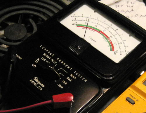 When I was calibrating an Apex DT502 signal strength bar with a SLM (Signal Level Meter) I noticed a slight shock when I touched ground and the equipment case. Because I didn't want to use, or pass on, dangerous equipment I tested the equipment that I was using for calibration with my Simpson 229 Leakage Current Tester. Apex #1: 22 VAC, 52 µA (micoamperes) Apex #4: 21 VAC, 50 µA Apex #1 & #4 together: 30 VAC, 100 µA (note that the leakage currents add) 2 Audiovox PLV16081 8" TV/Monitors: 21 VAC, 24 µA each CM 0747 Power Supply/Inserter for CM 7777, plug inserted correctly: ~1 VAC, ~1 µA CM 0747 Power Supply/Inserter for CM 7777, plug inserted reversed: 14 VAC, 33 µA Sony KDL22L5000 TV: 24 VAC, 52 µA Sadelco 719E SLM with AC Adapter/Charger: ~1 µA Radio Shack 15-1115 Preamp with AC Adapter: ~1 µA Leakage current tests must be made under 4 conditions: power on and off with plug normal, power on and off with plug reversed. With the exception of the CM 0747, all equipment gave the same readings under the 4 conditions. The 0747 has a 3.3 Meg resistor from ground to one side of the line, presumably to drain a static charge from the coax shield , which explains the difference in leakage current readings. The Apex boxes and the 8" TVs have switchmode power supplies that have higher leakage currents. The AC adapters for the SLM and the RS preamp use a transformer adapter which has good isolation from the AC line. CONCLUSIONS: All pieces of equipment tested are safe to use individually as per the guidelines in the Simpson manual and other standards. However, when other equipment is connected, the leakage currents add as demonstrated by connecting the two Apex boxes together. This means that when pieces of equipment that have 2-wire power cords are connected together, even when the polarized plugs are correctly inserted, it is advisable to ground the cabinets and coax. Before I grounded the interconnected equipment that I was using, the AC voltage to ground was 40 volts, and the total measured leakage current was about 200 µA. I originally bought the Simpson tester because of three close calls. One was because of my carelessness, the other two were because of the stupidity of others. Many years ago a neighbor asked me to help him connect his new TV. He was having trouble because the polarized 2-wire plug wouldn't go into the AC receptacle, so he filed down the wider prong (neutral). I asked him why he hadn't just turned the plug around so that the wider prong would go into the longer slot. He looked at the outlet, looked at the plug, and then looked at me and said: "Oh." Best regards, rabbit January 12, 2010; revised June 24, 2015 |