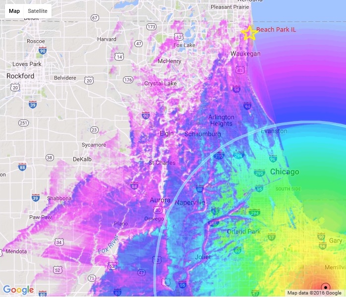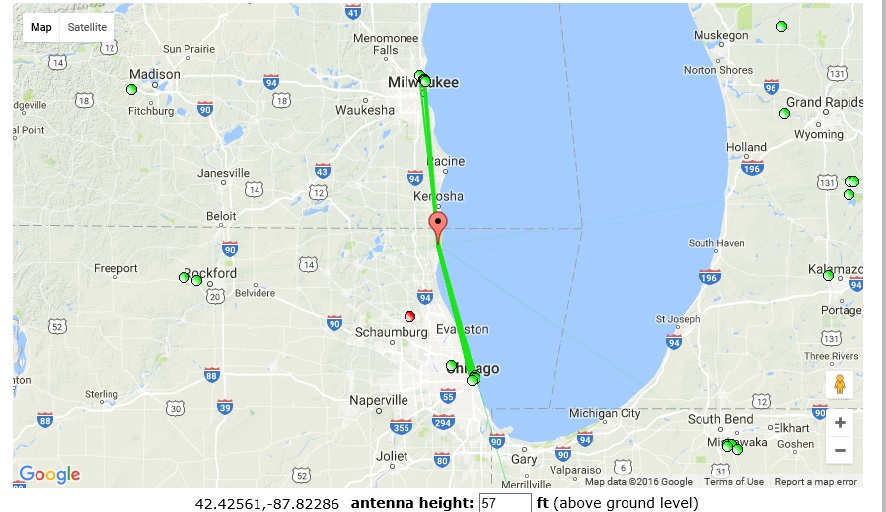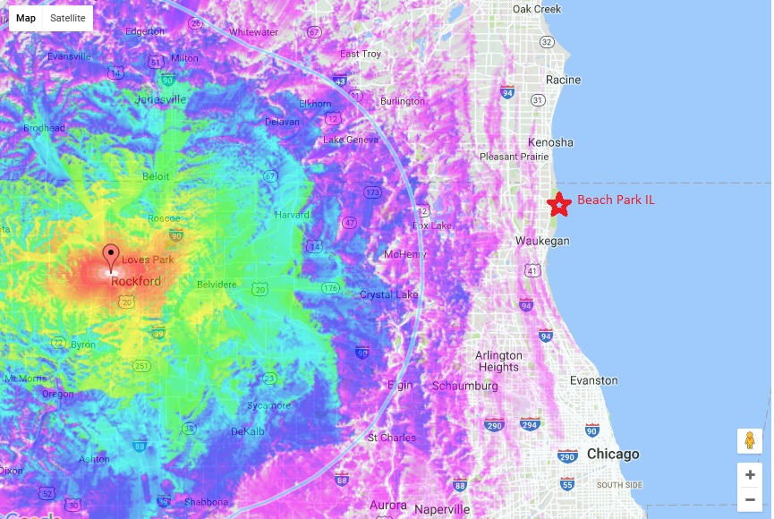 Well, That is the embarrassing part of my set-up. I am stuck with a 70 mile radius for reception and too much work to not have been able to get more. All the stations that I should get, I do get (Chicago-Milwaukee): http://forum.tvfool.com/attachment.p...1&d=1470581556 Strangely, TV Fool shows Gary, Indiana shows at the same distance, but it at least 10 miles more and I get that well too. The farthest station I get is PBS WYIN in Indiana 77 miles, but it is as easy as it gets, across the Lake front with no obstructions: http://forum.tvfool.com/attachment.p...1&d=1470581645 I really have issues getting Rockford 69.7 miles away to my west, but it looks as if I may have terrain blocking me. I don't think I've ever gotten Rockford and if I wanted it, I would need a much higher set-up. I say that because if I tell the TV Fool Interactive map I have a 300' AGL antenna I see a LOS to Rockford. 57' AGL to Rockford: http://forum.tvfool.com/attachment.p...1&d=1470581888 Across Lake Michigan are several stations 100+ miles, but I have too many tall trees to my east. I gave up on that this summer but I will retry this winter after the leaves have fallen. So in reality, I wont get anything over and above what my TV Fool report says I can get. |