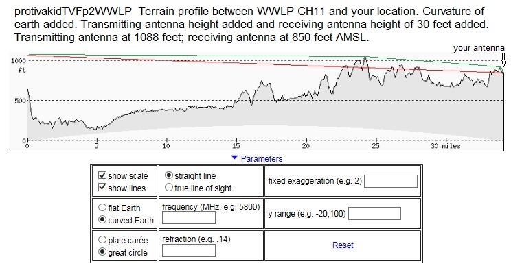 http://www.hdtvprimer.com/antennas/siting.html http://forum.tvfool.com/attachment.p...1&d=1482004020 http://forum.tvfool.com/attachment.p...1&d=1482004020 http://forum.tvfool.com/attachment.p...1&d=1482005257 That little hill only 0.3 mi away is a problem. http://forum.tvfool.com/attachment.p...1&d=1482005257 An MCM 30-2476 with the front end tilted up and a preamp might pick it up. |