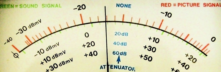http://forum.tvfool.com/attachment.p...1&d=1498347042 For the first measurements, I used a Blonder Tongue HAVM-1UA Frequency Agile Modulator as a stable signal source, and a Sadelco DisplayMax 800 Signal Level Meter. The modulator puts out an analog signal; I used the video carrier for each channel. The Sadelco meter has 0.1 dB resolution. http://forum.tvfool.com/attachment.p...1&d=1498349845 I was having a problem getting consistent measurements. The Sadelco meter has a built-in calibration reference and at certain intervals will correct its readings. This was difficult for me to deal with when making 0.1 dB resolution measurements, so I switched to my Sadelco 719E meter that has a panel meter with wide 1 dB divisions in the center of the scale that allows me to interpolate to the nearest 0.1 dB. The Sadelco 719E is on the left; the DisplayMax 800 on the right: http://forum.tvfool.com/attachment.p...1&d=1440873529 I used the red divisions and the second scale -10 to +20 dBmV. http://forum.tvfool.com/attachment.p...1&d=1498343067 I would read that as +2.8 dBmV. To make a measurement, I first connected the modulator to the meter with an F-81 adapter and took a reading. I then substituted the balun pair for the adapter for the second reading. If the loss of each balun is the same, then the loss of one would be half of the pair connected together. There was an attenuator at the output of the modulator and at the input of the meter to try to keep the line "flat" (low SWR). Code: