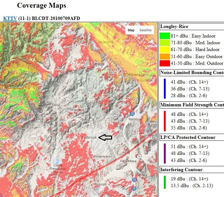 Tuners will vary a lot with their ability to capture weak signals. How good is the reception quality with the other 45% tuner? What is the other tuner? You are just inside the KTTV FCC Minimum Field Strength Contour. The coverage is very spotty because of the rough terrain: http://forum.tvfool.com/attachment.p...1&d=1499477531 I think your location is just above the arrow where there is no color. The link to the Longley-Rice coverage map for KTTV: http://www.rabbitears.info/contour.p...=1423068&map=Y |