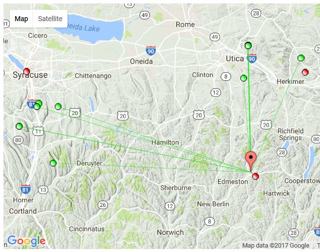 A closer look at the location shows that the Binghsmton stations would require a tall mast of around 30'. Reception of Utica and Syracuse can be done with a shorter mast. A DB 4e aimed north would be the simplest installation. A second UHF antenna for Syracuse would eliminate the rotator, but require two preamps and an external tuner (or an A/B switch).