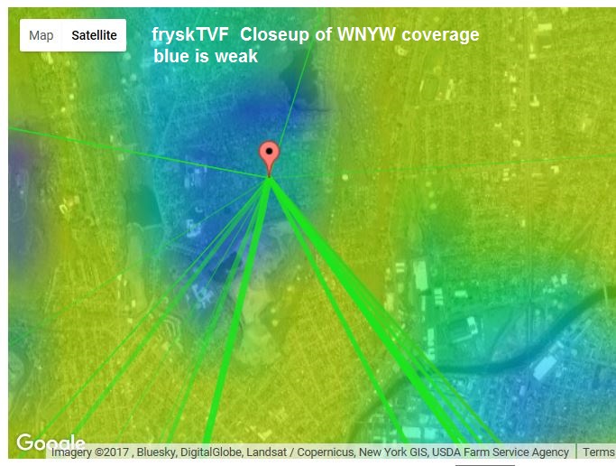 http://forum.tvfool.com/attachment.p...1&d=1502733367 http://forum.tvfool.com/attachment.p...5&d=1466633825 http://forum.tvfool.com/attachment.p...6&d=1446858514 http://forum.tvfool.com/attachment.p...1&d=1493487319 http://www.hdtvprimer.com/antennas/siting.html scroll down to Trees and UHF If I didn't know about the trees and the hill, your report would make me suspect tuner overload from your very strong signals, and I would suggest trying an attenuator in the coax. http://forum.tvfool.com/attachment.p...6&d=1471824123 Interpreting Noise Margin in the TV Fool Report http://www.aa6g.org/DTV/Reception/tvfool_nm.html Can you show us a photo of the trees in the WNYW Fox direction? Would you be willing to give me the coordinates of your antenna in a PM so that I can look at the satellite view? |