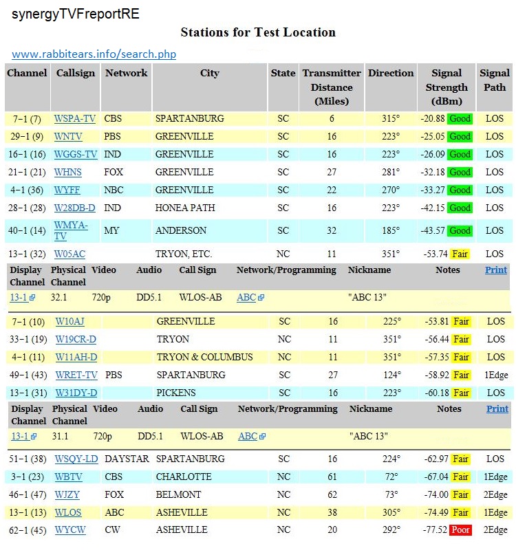 Thank you for the signal report. The link doesn't work because the center part got lost when you did a copy-and-paste from your previous post. Here is the corrected link: http://www.tvfool.com/?option=com_wr...60ed298e39ad8b The report that you did used the old database datecode 201711011344, that has a few errors. TVFool just started using a new more accurate datecode 201801291705 that shows the missing WSPA CBS on real channel 7: http://www.tvfool.com/?option=com_wr...90384fbd079eb6 http://forum.tvfool.com/attachment.p...5&d=1517361288 Unfortunately, your channels are in different directions, and some are much weaker than others. Which channels are most important to you? ABC is on W05AC and W31DY translators. http://forum.tvfool.com/attachment.p...4&d=1517360483 Quote: