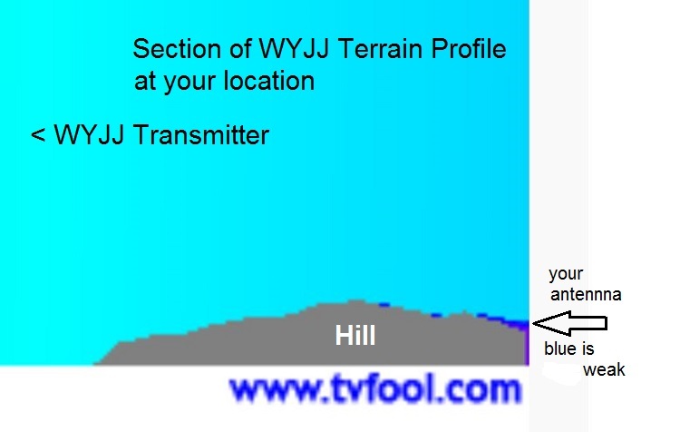 WYJJ was transmitting on real channel 27 with 10 kW ERP and a directional antenna. They were only sending 9 Watts in your direction. http://www.tvfool.com/?option=com_wr...dALLTV%26n%3d6 According to the FCC files they are now transmitting 15 kW ERP with a non-directional antenna on real channel 34, so the signal should be stronger than before. https://rabbitears.info//market.php?...&callsign=WYJJ https://www.rabbitears.info/tvq.php?...s&facid=188036 https://transition.fcc.gov/fcc-bin/tvq?facid=188036 https://licensing.fcc.gov/cgi-bin/ws...ion_id=2018779 Click on View LMS Authorization to see license. If you still have a problem, call the station engineer. If you send me your address and the coordinates of your antenna in a PM, I can try to make a more accurate analysis. |