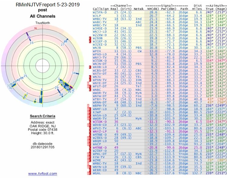 http://www.tvfool.com/?option=com_wr...90383cd810a4bf Any hope of getting more UHF or vhf hi channels 11 and 7? I had tried a cheap RCA ANT705E antenna inside raised on my cathedral ceiling and cabled to the TV ...got maybe 9 stations.. PBS UHF and I think maybe CBS. Cabled in my attic it did far worst through the longer RG6 cable left from my satellite. I will not be able to get above the trees with a root mount.. I was thinking to wait until the summer when there are leaves on the trees and try again with some sort of roof mount. I will not be able to get above them. |
