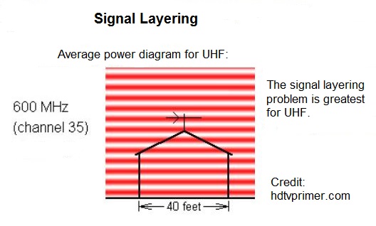 "For UHF the strong and weak spots are often 5 to 20 feet apart. If you are in a neighborhood with overlapping fields, moving your antenna a few feet can make a huge difference in signal strength. The chimney might seem like the perfect site, but if the chimney is in a weak spot then the chimney is a mistake. To make matters worse, the pattern of strong and weak spots will be different for different frequencies." http://www.hdtvprimer.com/ANTENNAS/siting.html If I can find rabbit73's post of Signal Layering/Overlapping Fields I'll edit with link or perhaps he will chime in with it. Hope this helps..... |