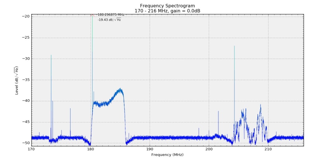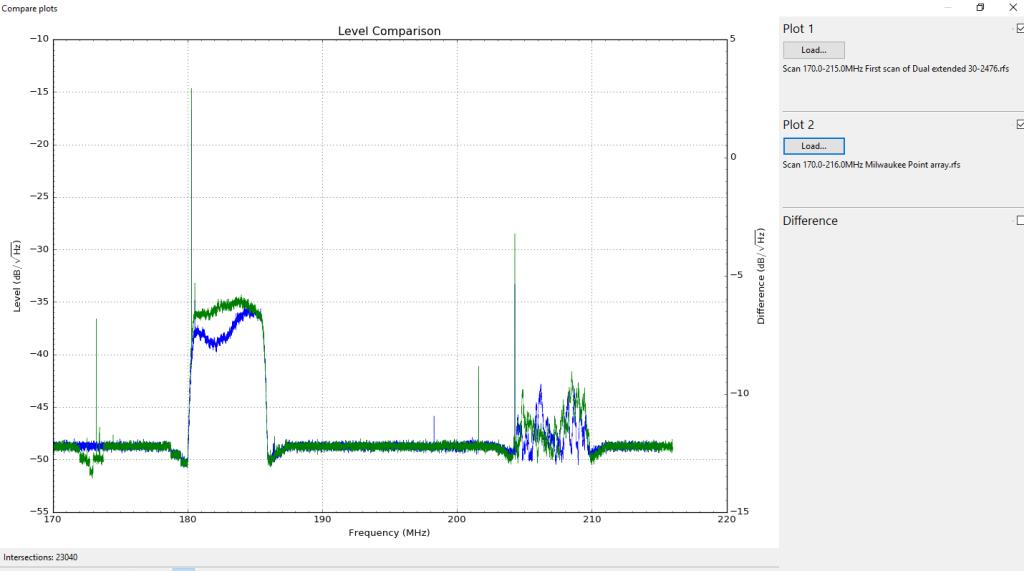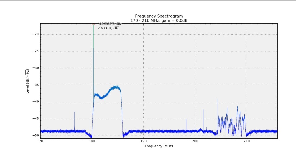 Here's the initial test. This is the RTL SDR Spectrum analyzer, with the new array pointing at Milwaukee and RF 8.