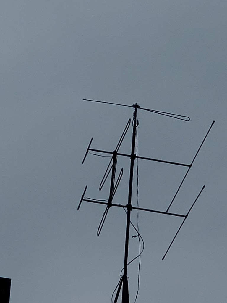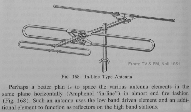 The two antennas are connected by what was called "stacking bars'. Stacking bars were transmission lines, usually made of material the same size of the antenna element. The spacing between the bars and bar length was chosen such that the 'stacking bar' impedance transformed 300 Ohms to ~600 Ohms, then when two antennas joined together, a connection in the center resulted in 300 Ohms impedance. http://forum.tvfool.com/attachment.p...3&d=1586789761 The small element is on the front of the antenna (toward stations). Don't know about the single driven element at the top of the tower. . |