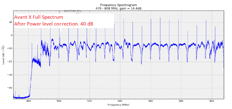 If so, then the Avant-X would be able to handle that. How about what the spectrum looks like directly off the antennas? Also, how about narrowing up the spectrum for 'groups' of channels? Separate question, can you confirm a software glitch where the 11th channel position on each page (the one furthest to the right) can NOT be manually adjusted + - 3db? |