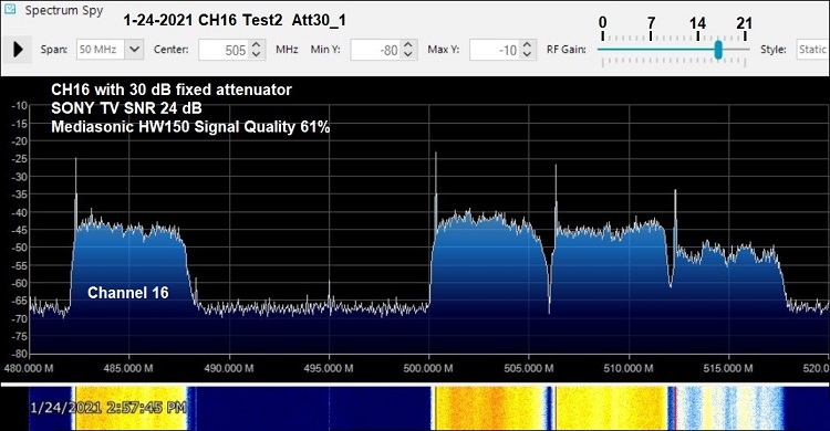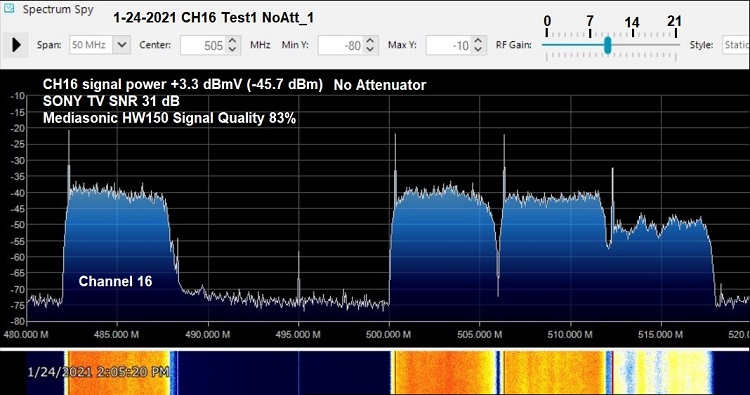 TV SNR and Mediasonic HW150 Signal Quality Comparisonhttp://forum.tvfool.com/attachment.p...8&d=1611587864 Here are the screenshots of the CH16 signal at SNR 31, 24, and 15 dB: http://forum.tvfool.com/attachment.p...9&d=1611588457 http://forum.tvfool.com/attachment.p...0&d=1611588474 http://forum.tvfool.com/attachment.p...1&d=1611588492 This is a screenshot of the Mediasonic HW150 for CH20 at the "Digital Cliff." http://forum.tvfool.com/attachment.p...2&d=1611589019 The Mediasonic HW-150 has a built-in power supply and outputs for HDMI, Component, and Composite. (Composite is also known as CVBS for Composite Video Baseband Signal) The less expensive HW-130 has a separate wall-wart power supply and outputs for HDMI and Composite; no Component output. http://forum.tvfool.com/attachment.p...4&d=1611761912 Both models are able to add a channel after scan, which is very useful if you have more than one antenna or a rotator. Tyler the Antenna Man uses the HW-130 for antenna comparisons. http://forum.tvfool.com/attachment.p...3&d=1611760402 This is the link to Tyler's video: https://www.youtube.com/watch?v=YDQzvFG3chs |