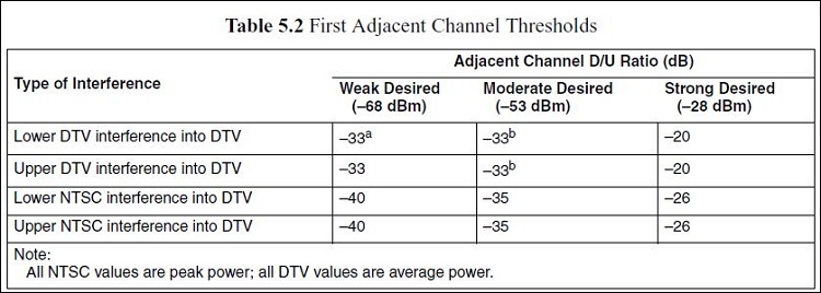 https://forum.tvfool.com/attachment....3&d=1615849187 https://www.rabbitears.info/searchma...tudy_id=231919 https://forum.tvfool.com/attachment....4&d=1615849227 https://forum.tvfool.com/attachment....5&d=1615849250 ATSC Recommended Practice: Receiver Performance Guidelines Document A/74:2010, 7 April 2010 RECEIVER PERFORMANCE GUIDELINES 5.4.2 Adjacent Channel Rejection The receiver should meet or exceed the thresholds given in Table 5.2 for rejection of first adjacent-channel interference at the desired signal levels shown above the columns therein. https://forum.tvfool.com/attachment....6&d=1615849868 Quote: