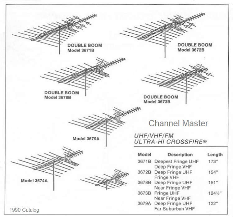 The bottom antenna is a Channel Master 3025, formerly know as the 4408. It's an FM antenna. https://forum.tvfool.com/attachment....2&d=1617909296 https://forum.tvfool.com/attachment....3&d=1617911083 https://forums.stevehoffman.tv/threa...-today.999085/ http://ham-radio.com/k6sti/probe9.htm The Channel Master Stereo Probe 9, model number 3025 (previously 4408), is a log-Yagi array with nine elements on a 135″ boom. Four folded dipole elements are driven. |