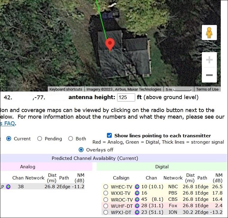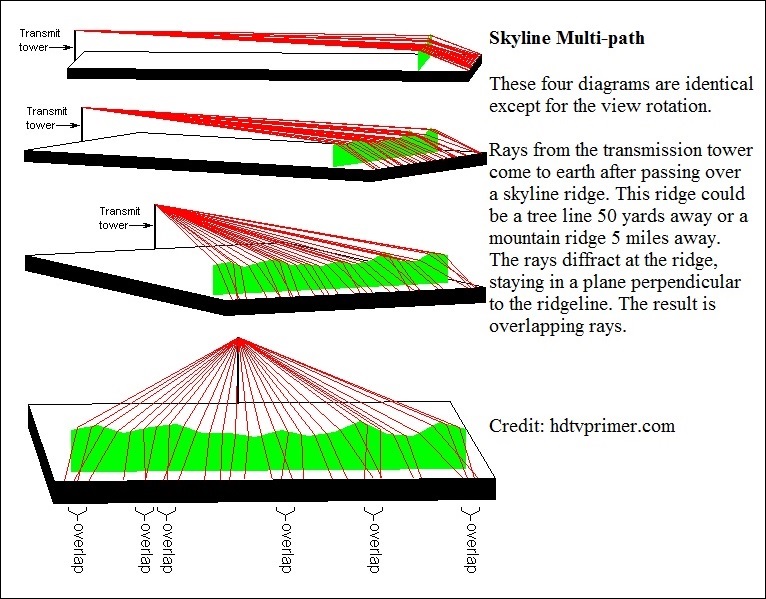 Your HILL: https://forum.tvfool.com/attachment....7&d=1687887532 The knife-edge effect scatters the signals at the crest of the hill: https://standards.tiaonline.org/mark...5F%5BQB%2BK%0A https://forum.tvfool.com/attachment....8&d=1687887895 This shows the scattering: https://forum.tvfool.com/attachment....4&d=1687978694 which creates overlapping fields: https://forum.tvfool.com/attachment....6&d=1687990318 This is the rabbitears.info signal report for your location: https://rabbitears.info/searchmap.ph...udy_id=1012794 Extract from report: https://forum.tvfool.com/attachment....9&d=1687890837 Using outdated TVFool data, I tried different antenna heights: https://forum.tvfool.com/attachment....1&d=1687895038 https://forum.tvfool.com/attachment....2&d=1687895644 https://forum.tvfool.com/attachment....3&d=1687896113 After making sure you have the best antenna for your location and all the connections are good, you have three choices: 1. Get used to what you are able to receive with the present antenna. 2. Move to a better location for OTA reception. 3. Put up a tower, after making a clear cut of the nearest trees in the signal path. You can sell the timber to help pay for the tower. Quote: