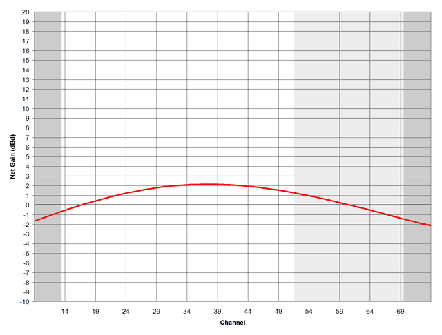 - Loops typically get between -2 and +2 dBd at different points within the UHF band. If the antenna has a user-selectable tuning circuit (typically a multi-position switch on the base), it may be possible to move the peak of the gain curve to higher or lower frequencies, depending on which channel you want to watch.