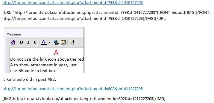 The clue is in the text box. Just read the text box in a post as if you were going to quote it. You used the link icon for a URL instead of just adding the BB code to the attachment URL: