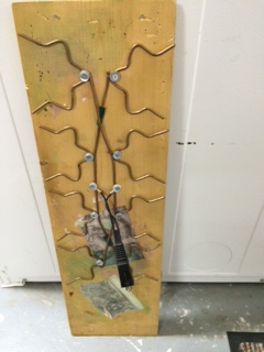 The problem here was that the new location forced me to put the antenna on the nearest stud making it lean back instead of sitting up right. Also, the top part came loose from the screws. I placed a board on top of ant between the studs, re-positioned the antenna in a more up right fashion, repaired the loose elements and placed a screw between the antenna board and the board across the studs so nothing would move.