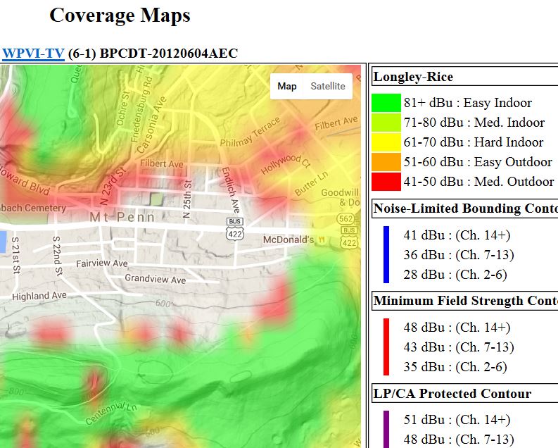 There are three other problems that might affect your reception of WPVI. The terrain profile shows that you are behind a hill for the WPVI signal: