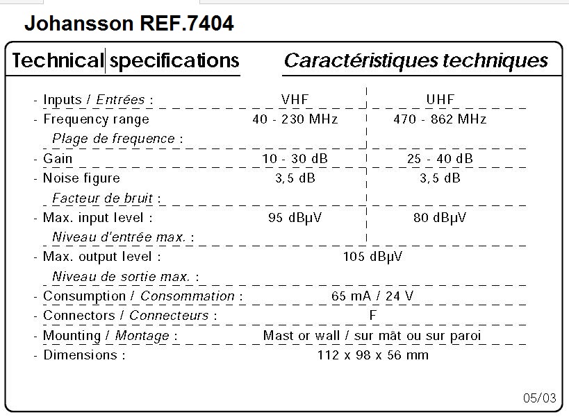 So I made my calculations based on the CM 30 dB 7777 amplifier for UHF and VHF combined, to answer that question.