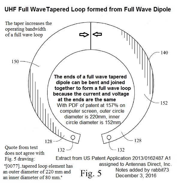 We also see fullwave elements in UHF and VHF loop antennas. Think of it as a folded dipole that has been opened up to form a circle, rectangle, or square. The folded dipole has two halfwave wires connected at the ends.