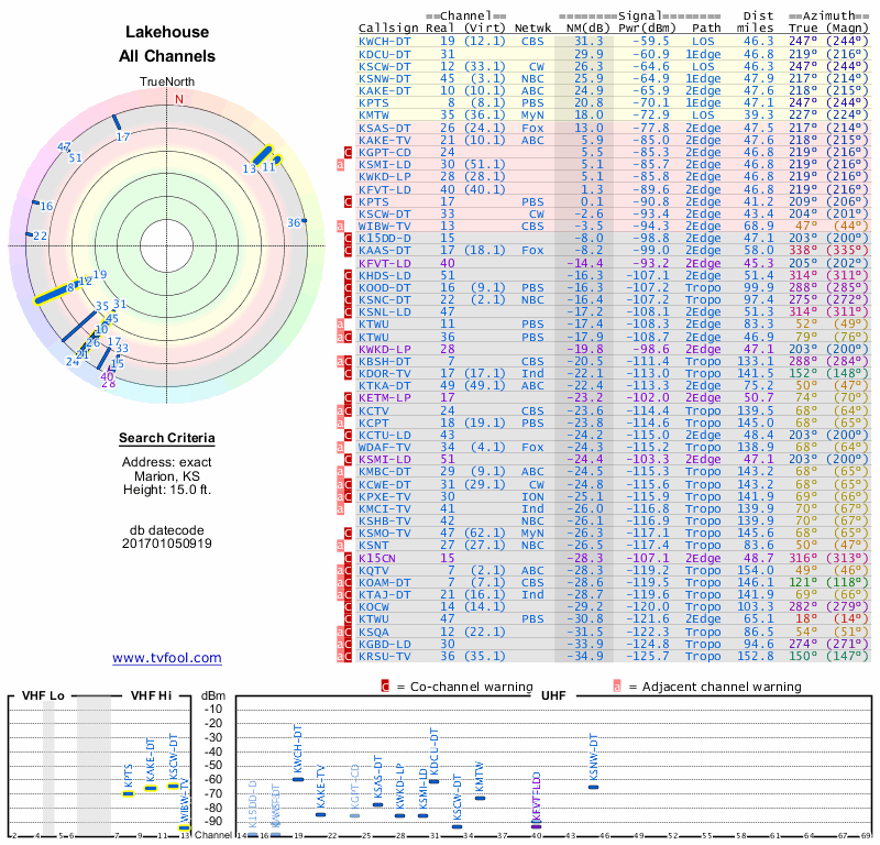 Attached is my Reception Map for Marion County Lake. I have a Winegard HD 7696P High Definition VHF/UHF HD7696 Series Antenna (HD7696P) on a 15' pole attached to the side of the House. It reaches just above the roof. I put it there in about 2013. I tried an inexpensive RCA preamp, but the reception was worse. At first, I was able to receive a couple of channels. Now I get just flickering junk even in the evening when the wind has died down. They all tell me I can't get OTA television here. I really would like to prove everybody wrong. I'm wondering what are recommendations to improve my situation.