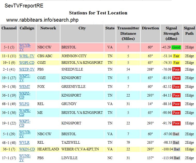Interestingly is showed the WKPT transmitter. Even though it is not on my TV Signal Analysis Results
