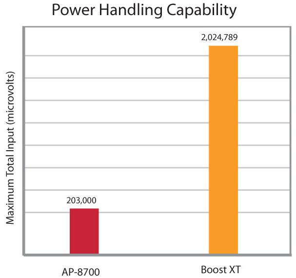 The device can handle +20 dBm RF Input Power provided IGS is limited to 2 mA”. I’m not quite sure how to interpolate that number in terms of Winegards advertised “Maximum Total Input (microvolts)” of “2,024,789” ..