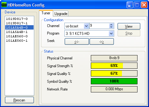I like the signal quality metering that is provided with the utility software, it reports relative signal strength, signal quality and symbol quality. Not as good as a pro-grade ATSC signal analyzer but a step or two above any other consumer equipment signal indication. The same utility reports the real time data rate of a given channel and some MPEG details. (See the attached screen shots. Notice that signal strength alone does not determine signal quality. Something to think about before you run out and buy an amplifier hoping it will do the antennas job for you. )